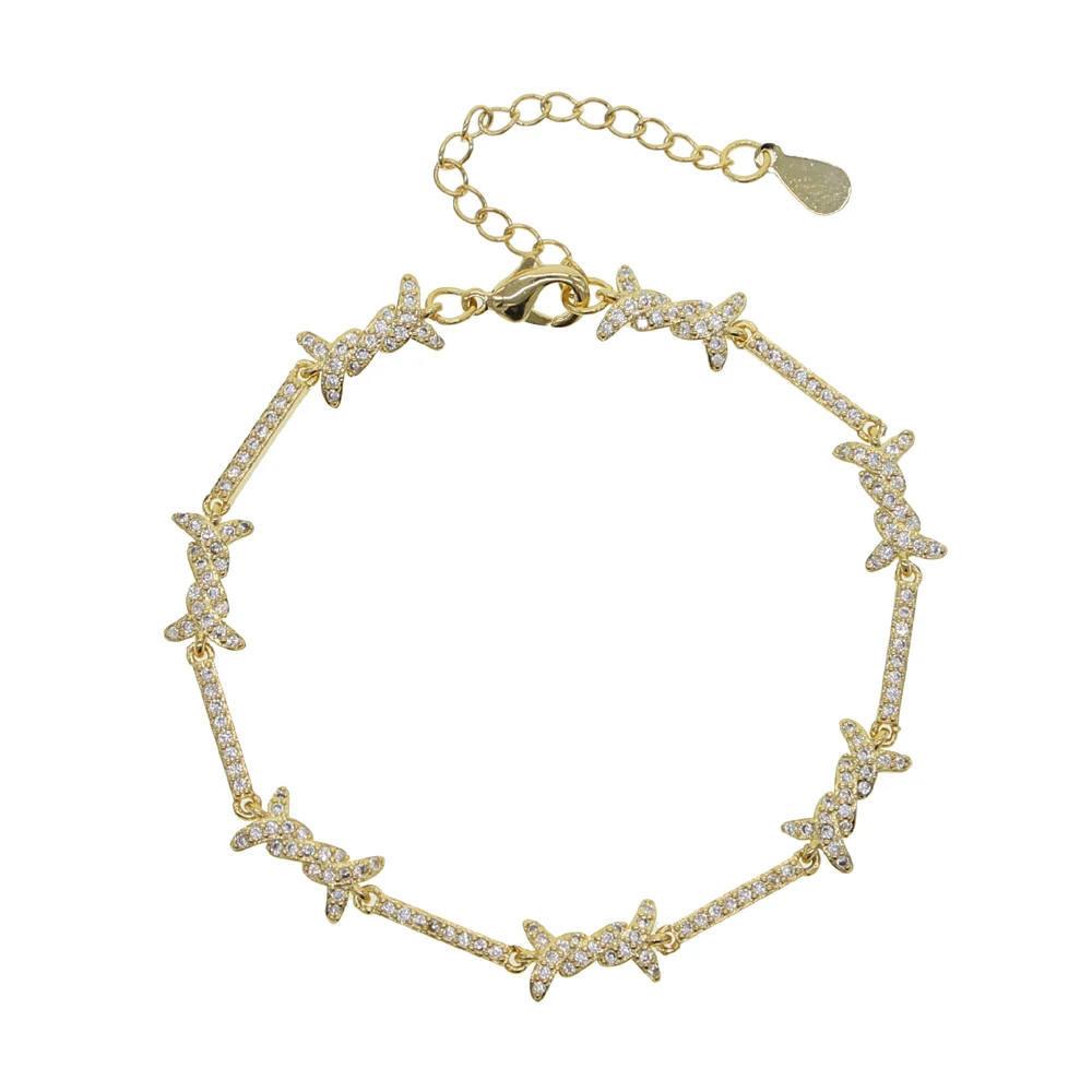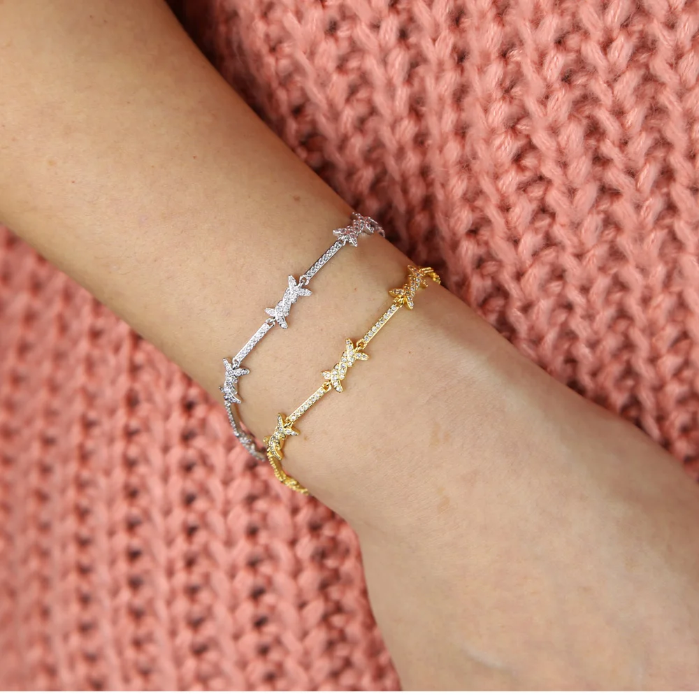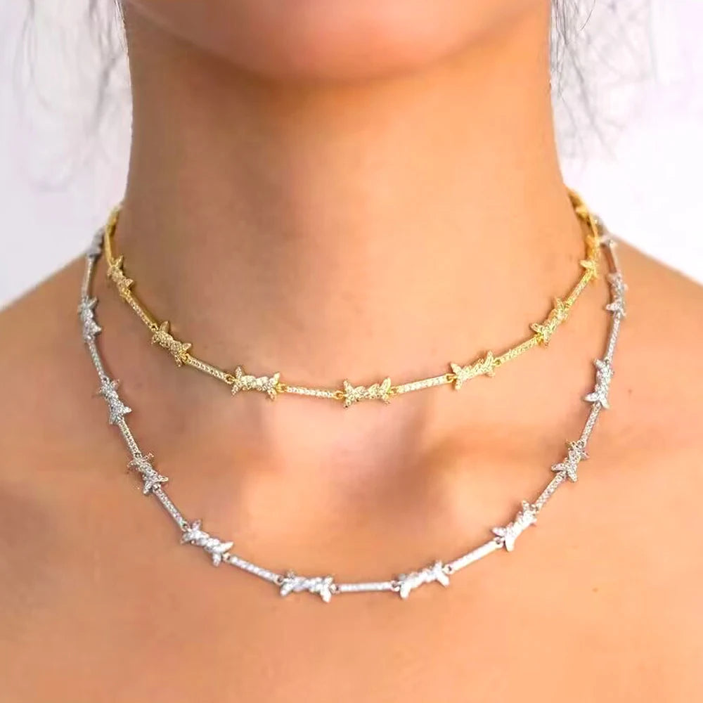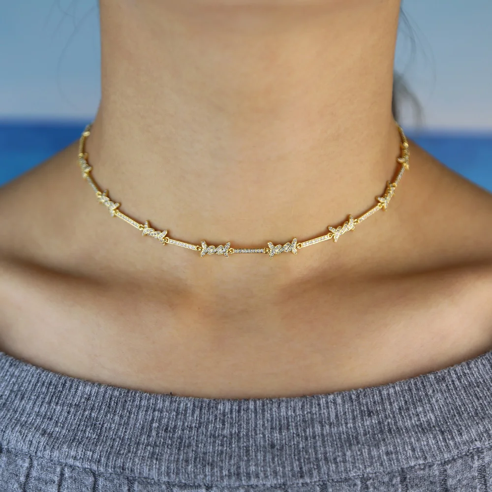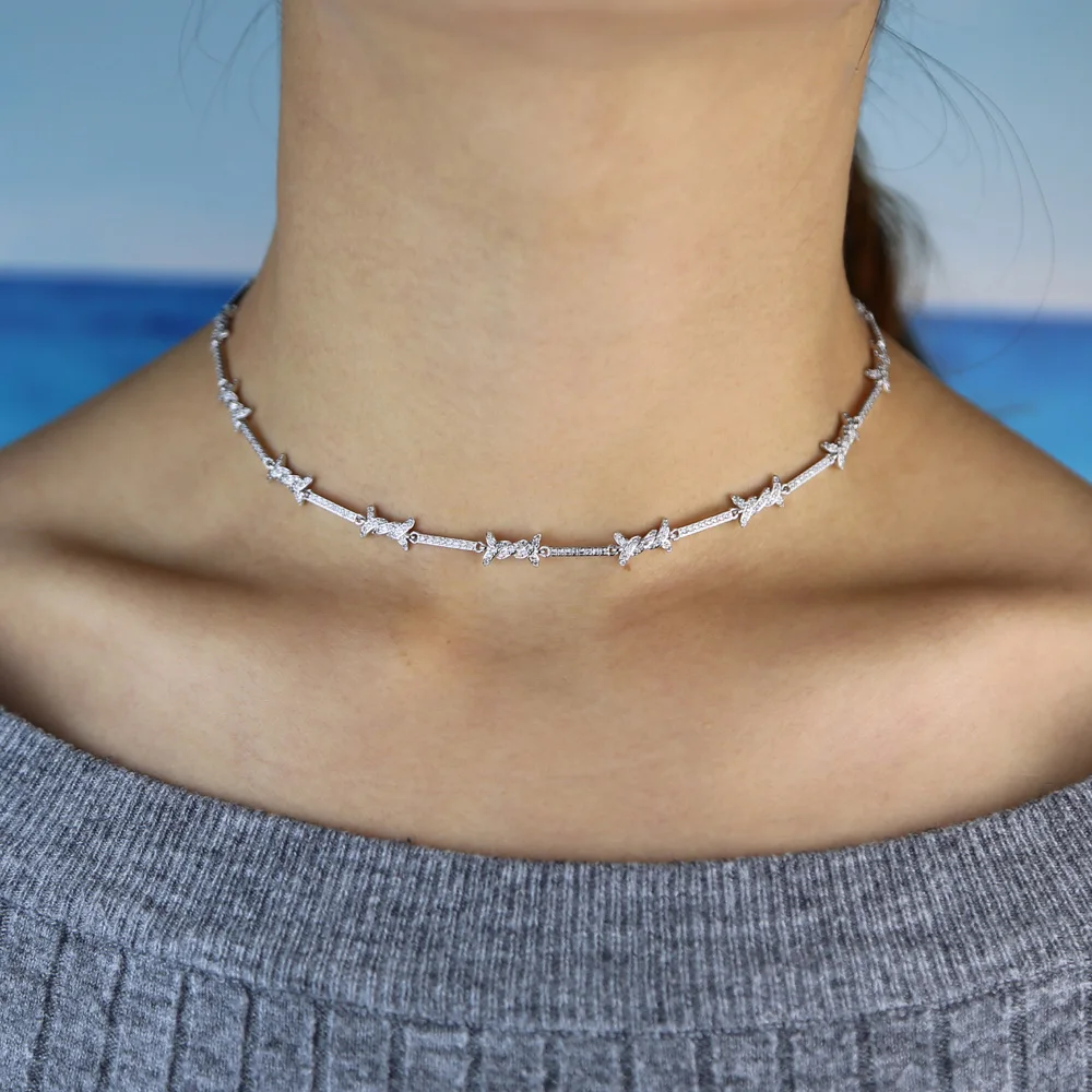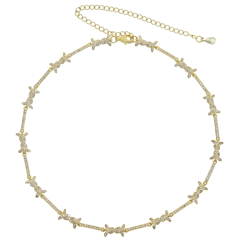 cz barbed wire charm choker necklace bracelet micro pave cubic zirconia adjust chain elegance delicate girl women jewelry sets